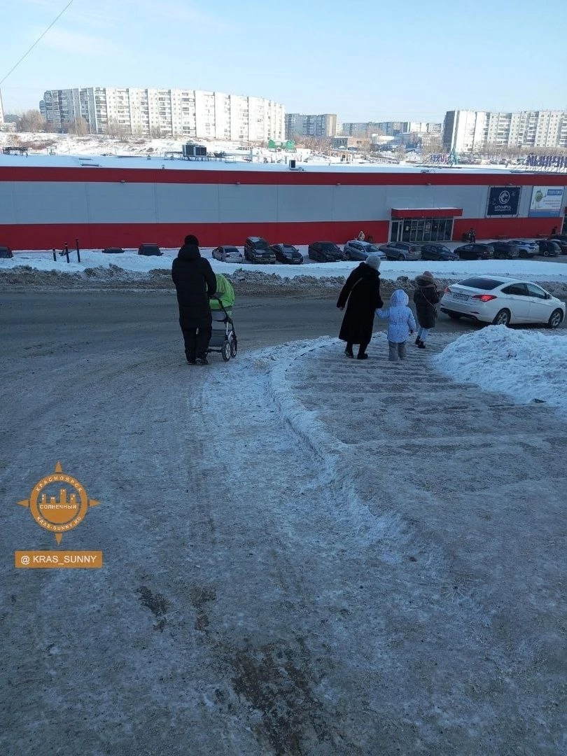 Обращение поступило от жителей микрорайона Солнечный. Люди жаловались на мокрый снег, наледь и отсутствие оборудованной для маломобильных жителей и мамочек с колясками дороги между жилыми домами по ул. 60 лет Образования СССР, 26А и 26Б. Все эти три фактора вместе с резким спуском делали передвижение небезопасным. Дорога больше походила на русские горки.