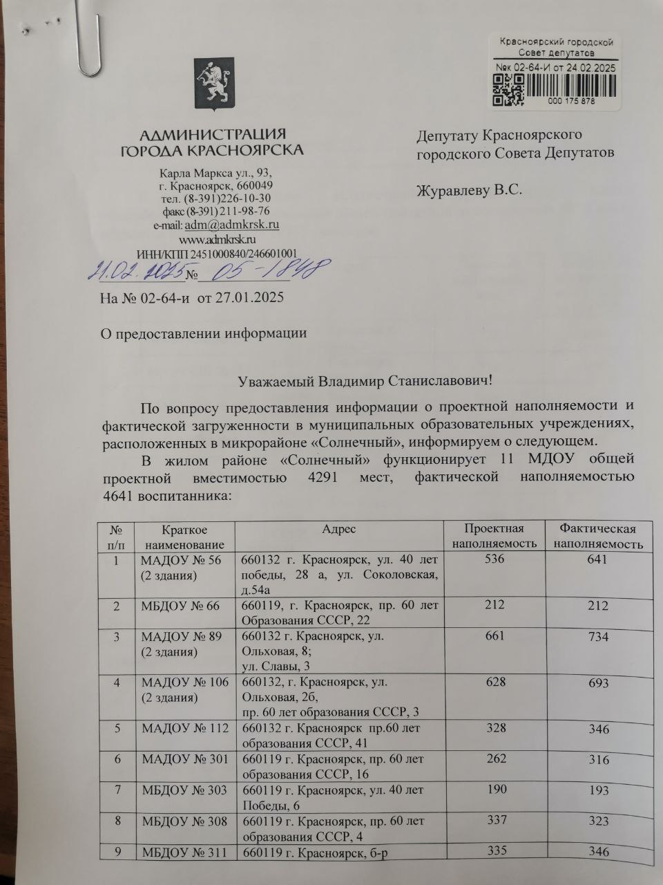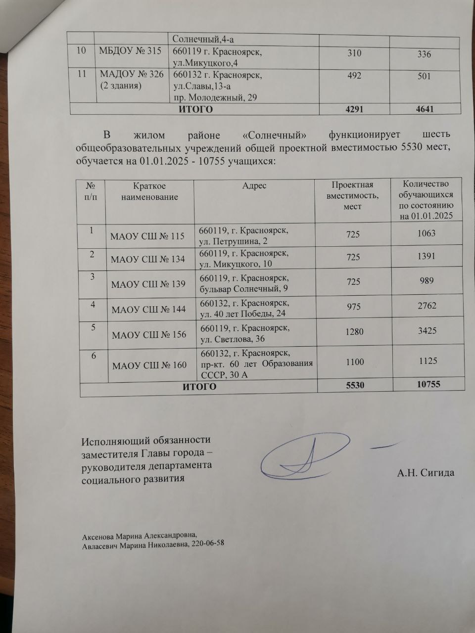 На заседании постоянной комиссии по социальной политике заслушали отчет руководителя главного управления образования в Красноярске Марины Аксеновой о реализации муниципальной программы «Развитие образования в городе Красноярске» за 2024 год