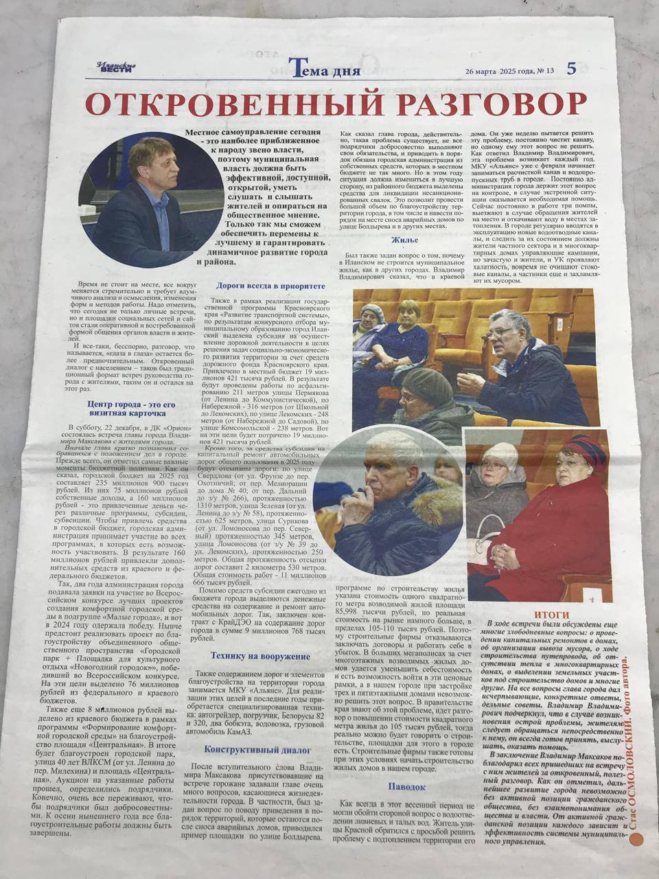 Глава Иланского выступил перед депутатами с отчетом о работе, проделанной в прошлом году. В нём прозвучало всё то, что ранее градоначальник озвучивал на встрече с жителями. Анонсировалась та встреча, как мероприятие для обсуждения вопросов жизнедеятельности города. Только горожане на неё не пришли. По словам местных жителей, участников едва набралось с десяток, и те были работники администрации. После вышла заметка в местной газете о том, что в Иланском все хорошо и идет по плану