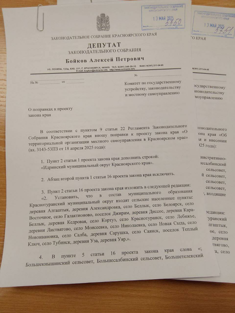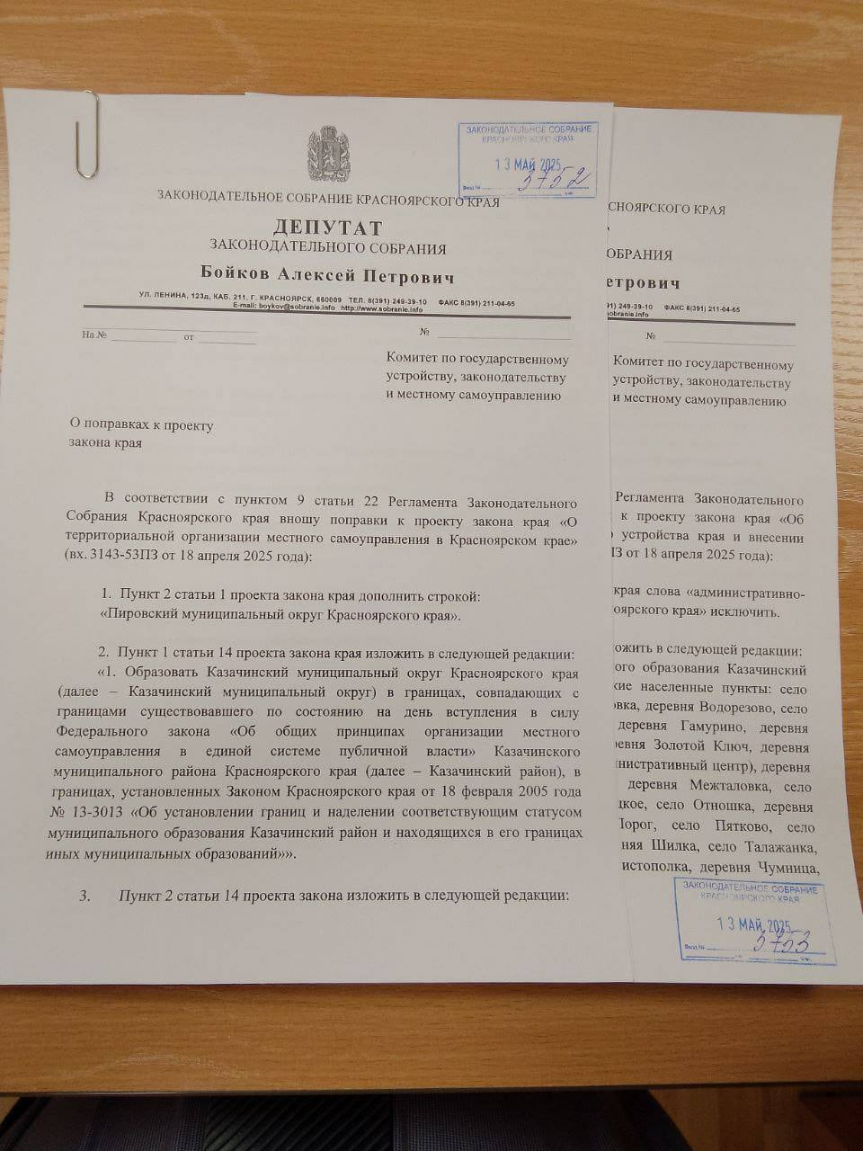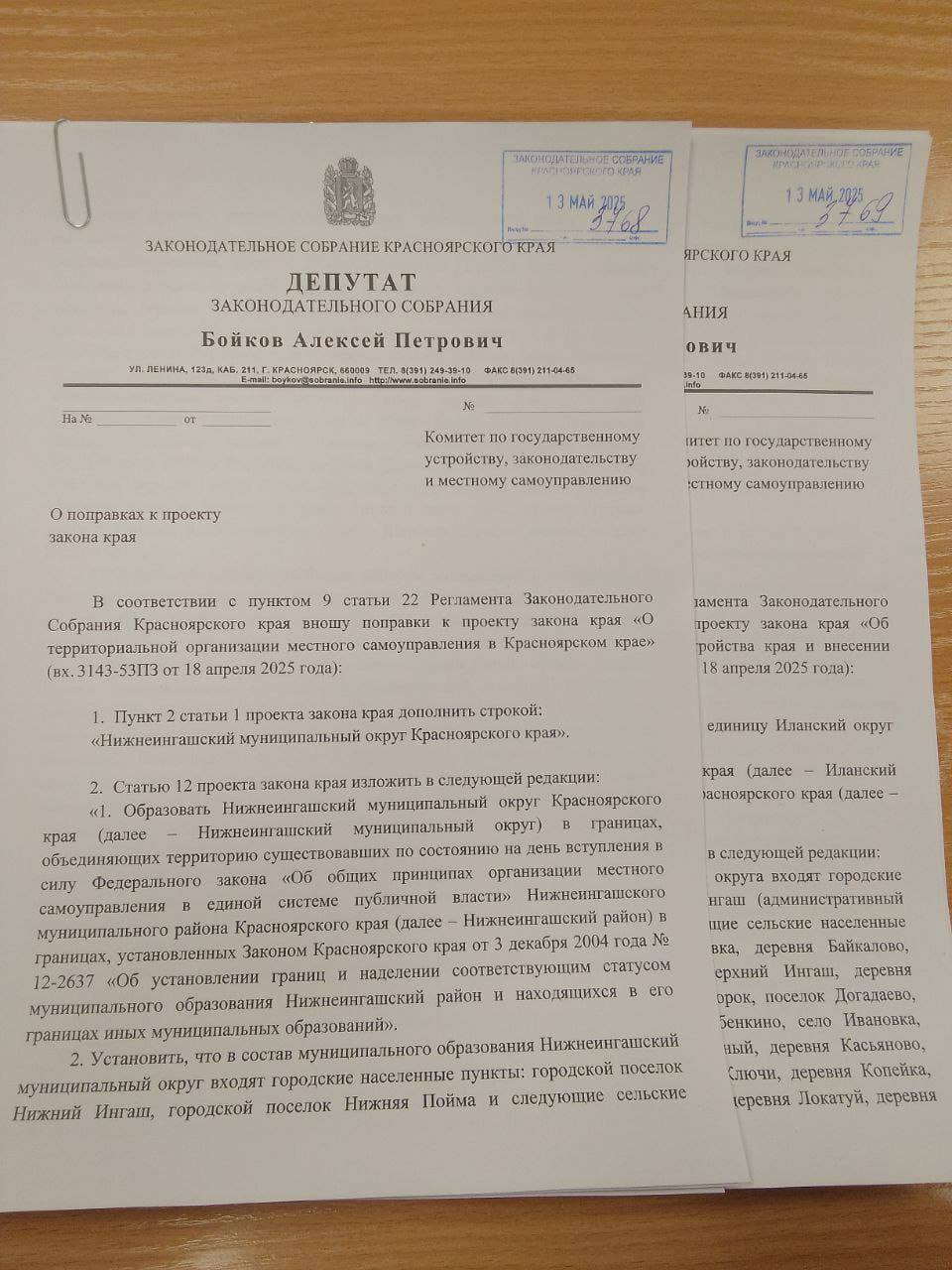 «Внес три поправки в законопроект края. Считаю, что Нижнеингашский район должен стать самостоятельным округом, как и Идринский. Пировский муниципальный округ тоже нужно оставить в покое и не присоединять его к Казачинскому», — рассказал Алексей Бойков.