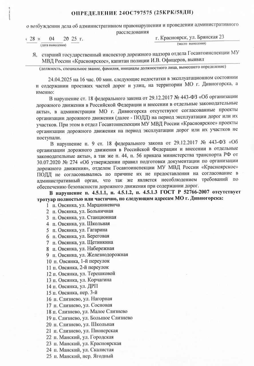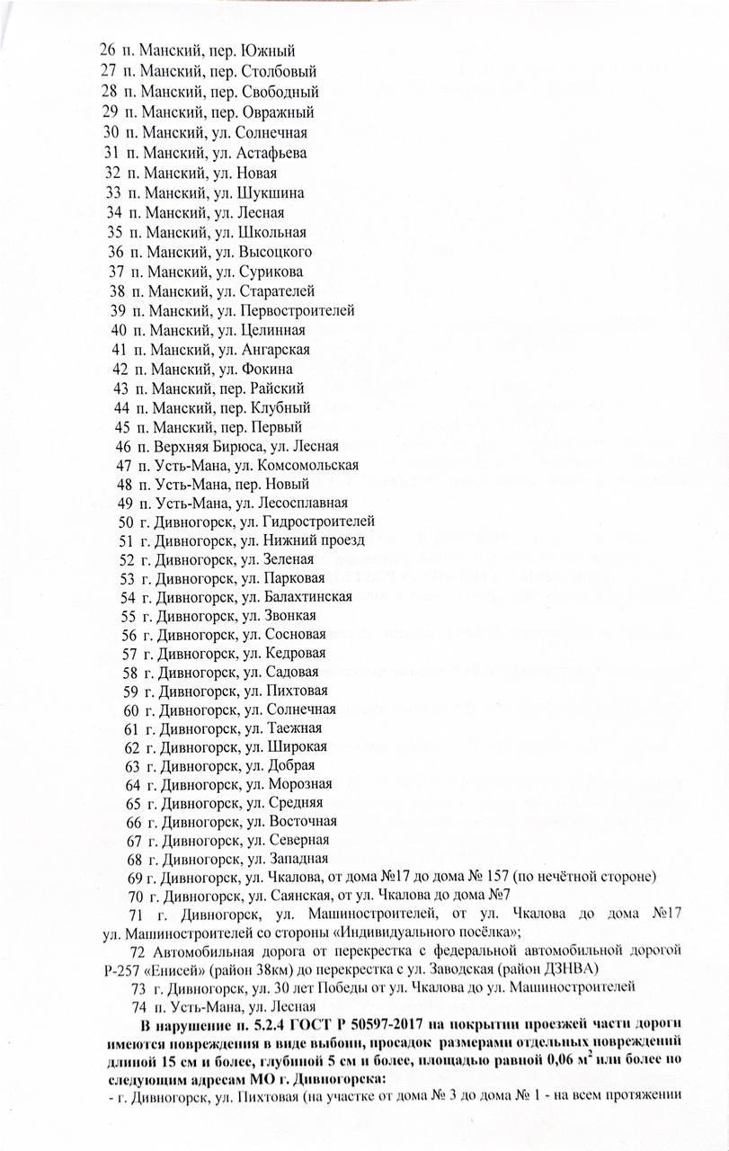 В Дивногорске на 70 улицах нет тротуаров: какие ещё нарушения нашли во время проверки