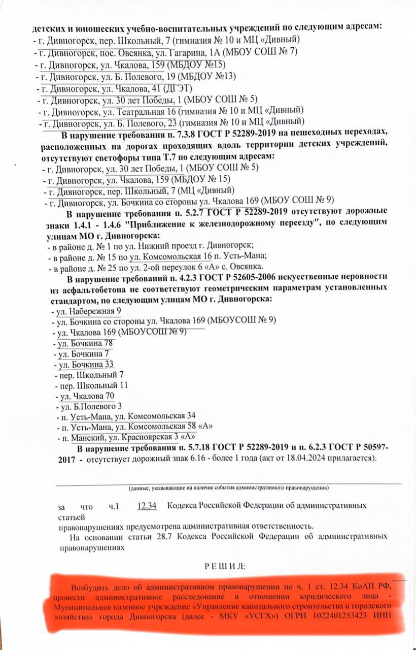 По всем этим фактам уже возбудили административное дело против управления капитального строительства и горхозяйства, из бюджета города придется заплатить 100 тысяч рублей.