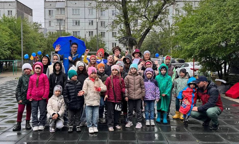 В Красноярске руководитель фракции ЛДПР горсовета Семён Сендерский вместе с почтальоном Печкиными провели яркий дворовый праздник под девизом: «Мокрые, но счастливые!» — и действительно, радость детей была сильнее любой непогоды.