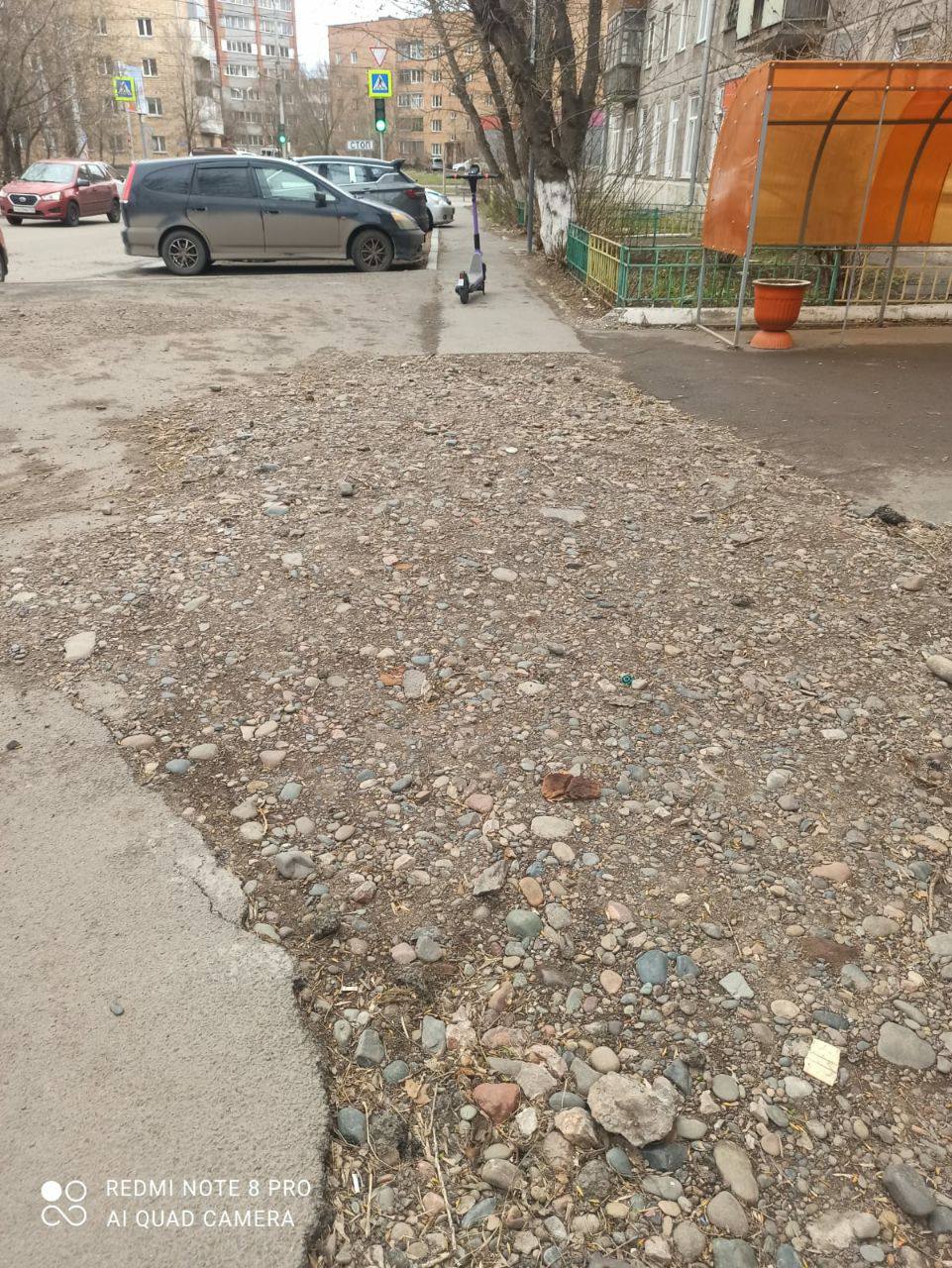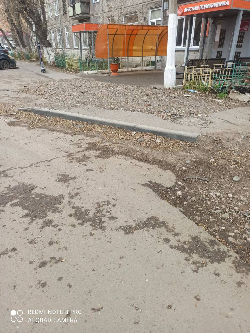 После раскопок, меняли трубы или кабель, территорию у входа в поликлинику так и не привели в порядок. Вместо асфальта — земля и камни. Родители с детьми входили в поликлинику прямо через кашу из грязи. Проблема затянулась на месяцы.