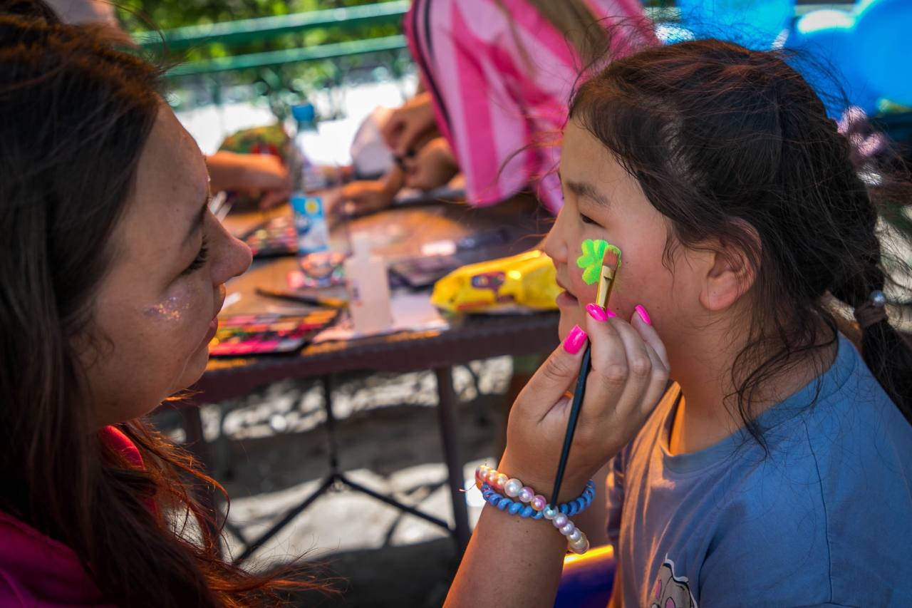 С первых минут площадка оживилась: работали творческие зоны, звучала музыка. Их дополняли спортивные игры и, конечно, караоке. Кто-то пел, кто-то осваивал настольный теннис, дети с интересом делали браслеты из бисера и выстраивались в очередь на аквагрим.