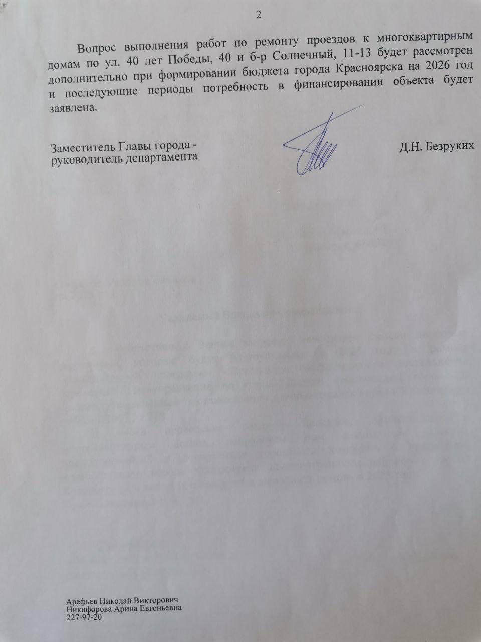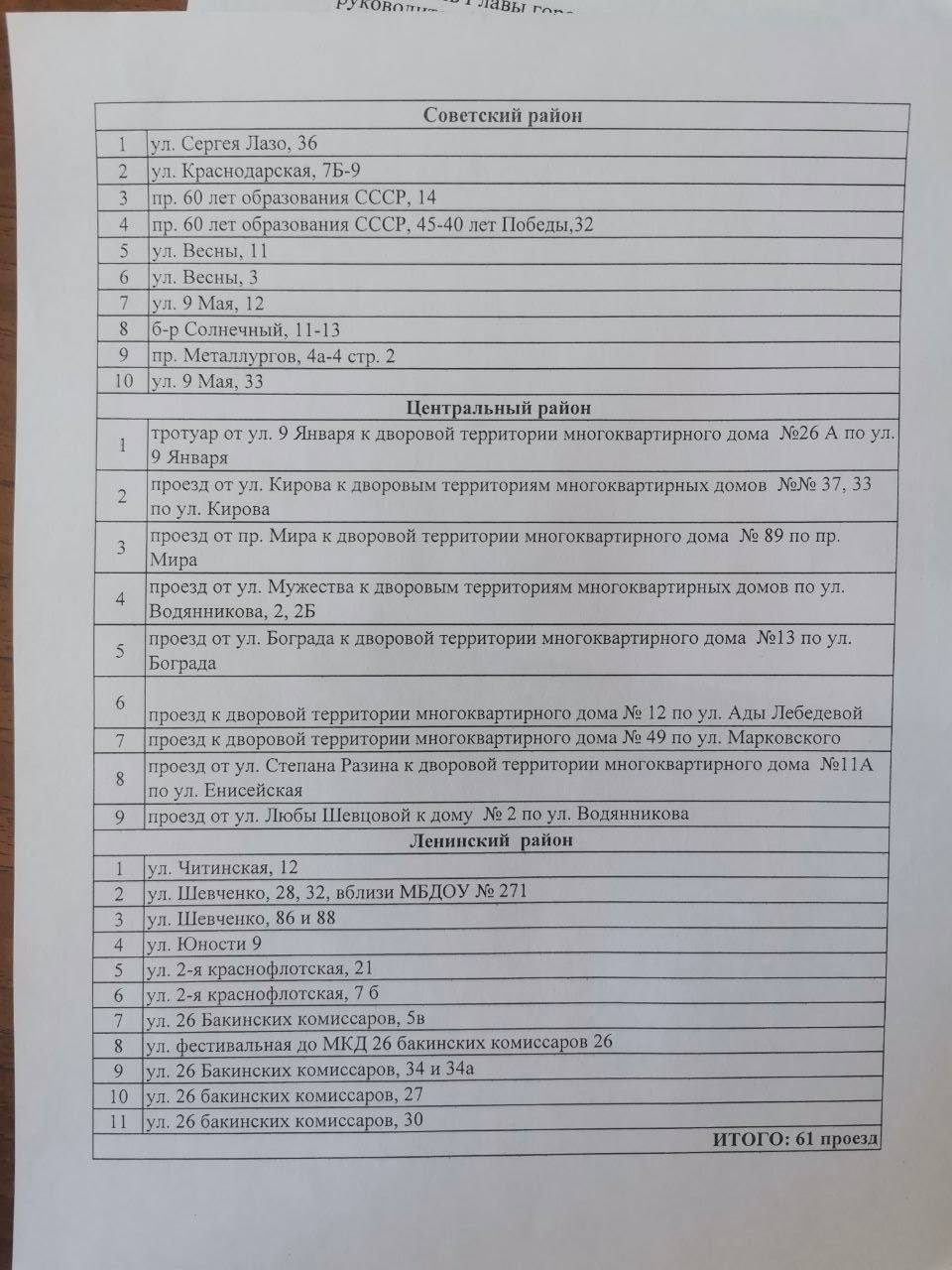 Получил ответ департамента городского хозяйства. Ниже список междворовых проездов и дворов, которые, согласно ответа, должны были отремонтировать в Солнечном в этом году: