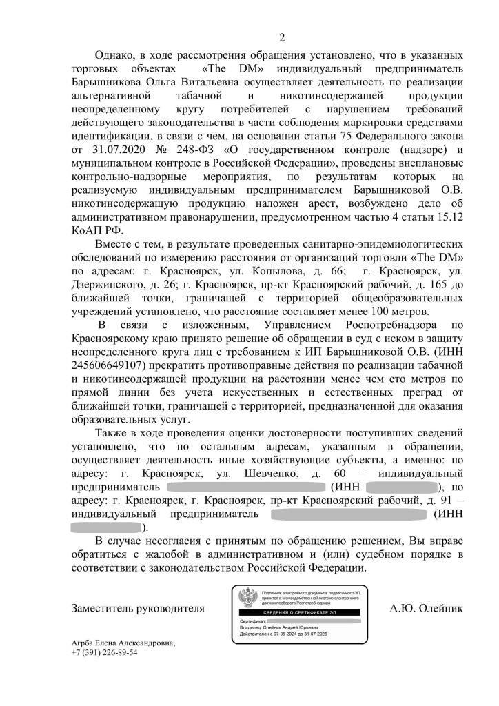 Более того, в официальном ответе Роспотребнадзора указано — три из пяти магазинов сети находятся рядом с учебными заведениями, что категорически запрещено. После проверки возбудили дело об административном правонарушении, товар арестовали.