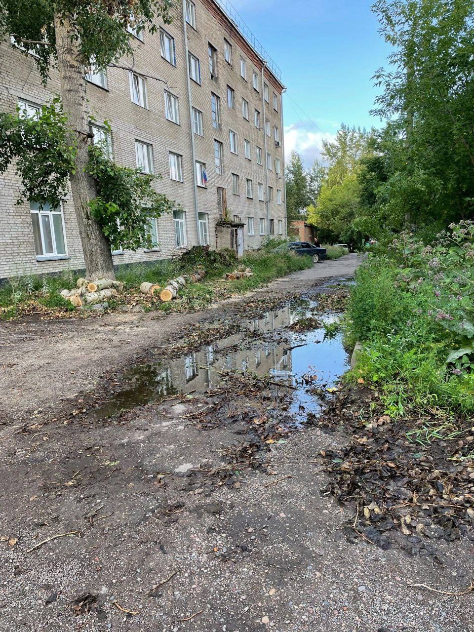 Больше месяца по адресу 26 Бакинских комиссаров, 40а местные жители вынуждены были любоваться поваленными после урагана деревьями и последствиями ремонтных работ на электросетях. Специалисты компании «Россети Сибирь» трудились на территории двора, возле трансформаторной будки. Сделать дело — сделали, и уехали, оставив последствия работы