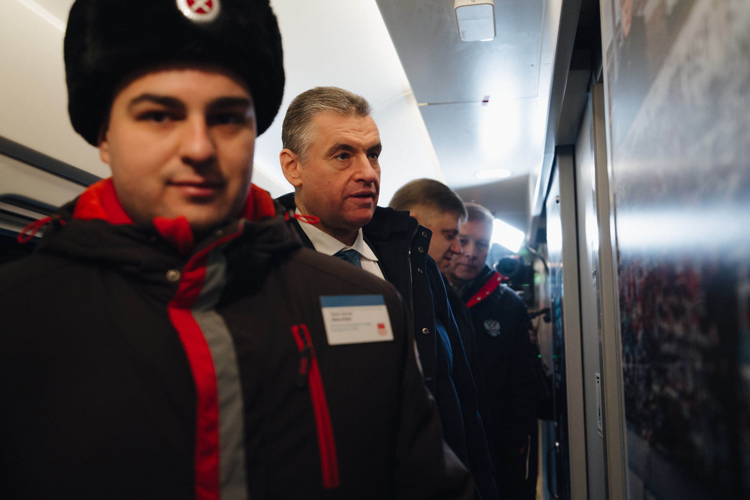 Леонид Слуцкий отправил в первый рейс по маршруту Москва – Адлер двухэтажный пассажирский поезд с тематическим вагоном «Россия. Жириновский»