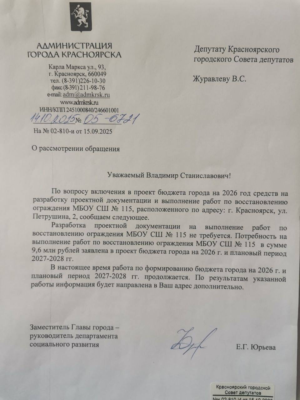 «Вопрос сдвинулся с мёртвой точки. Ремонт будет. Рад, что обращение директора не осталось без внимания. Такие, казалось бы, «маленькие» проблемы на деле важны для детей и педагогов», — подвел итог Владимир Журавлев.