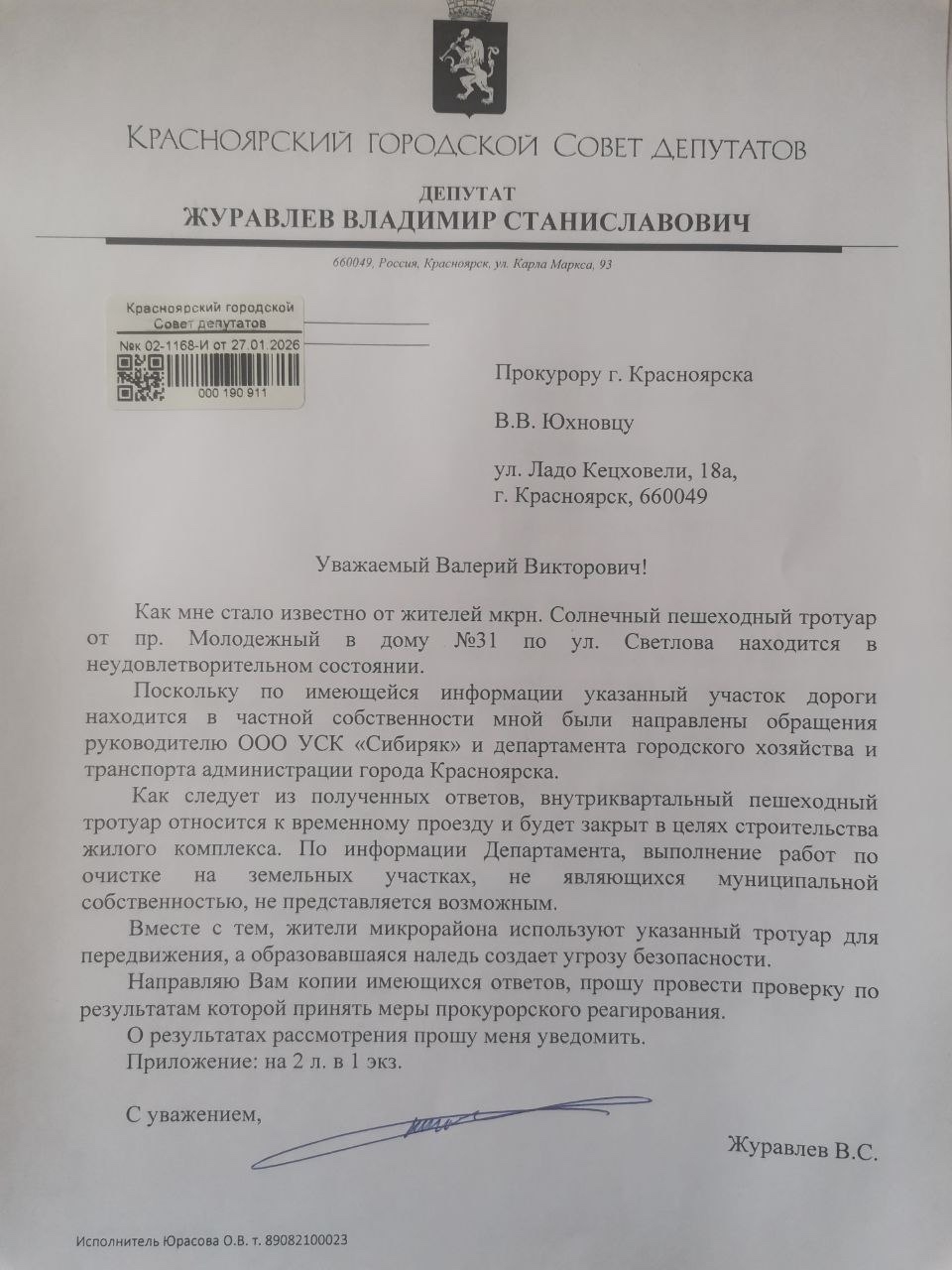 Народный избранник направил обращение в прокуратуру Красноярска для правовой оценки ситуации и, в случае выявления нарушений, принятия мер прокурорского реагирования. Безопасность людей не может откладываться, пока решается вопрос с «временным» проездом.