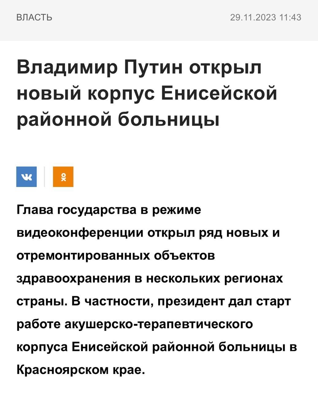 Похожая ситуация с роддомом в Енисейске. Его тоже открыли в ноябре 2023-го. В церемонии по видеосвязи участвовал президент. Новый акушерско-терапевтический корпус обошелся бюджету в 1,2 млрд рублей. И теперь выясняется, что в учреждении с такими мощностями «нет особой необходимости».
