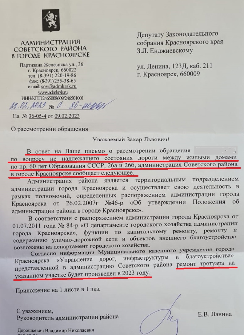 Хорошие новости. Депутат ЛДПР в Заксобрании Захар Енджиевский получил ответ краевой прокуратуры, администрации Советского района и управления дорог со сроками по ремонту проблемного спуска и лестницы в Солнечном