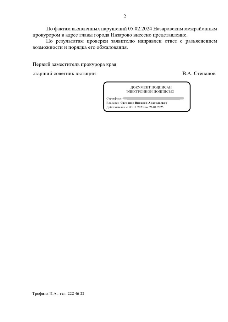 При этом прокуратура установила, что дело рассмотрели ненадлежащим образом, оценку всем доводам и показаниям не дали, а вынесенное определение оказалось не законным и даже не мотивированным! В итоге из-за бездействия чиновников прокуратура внесла представление главе Назарово.