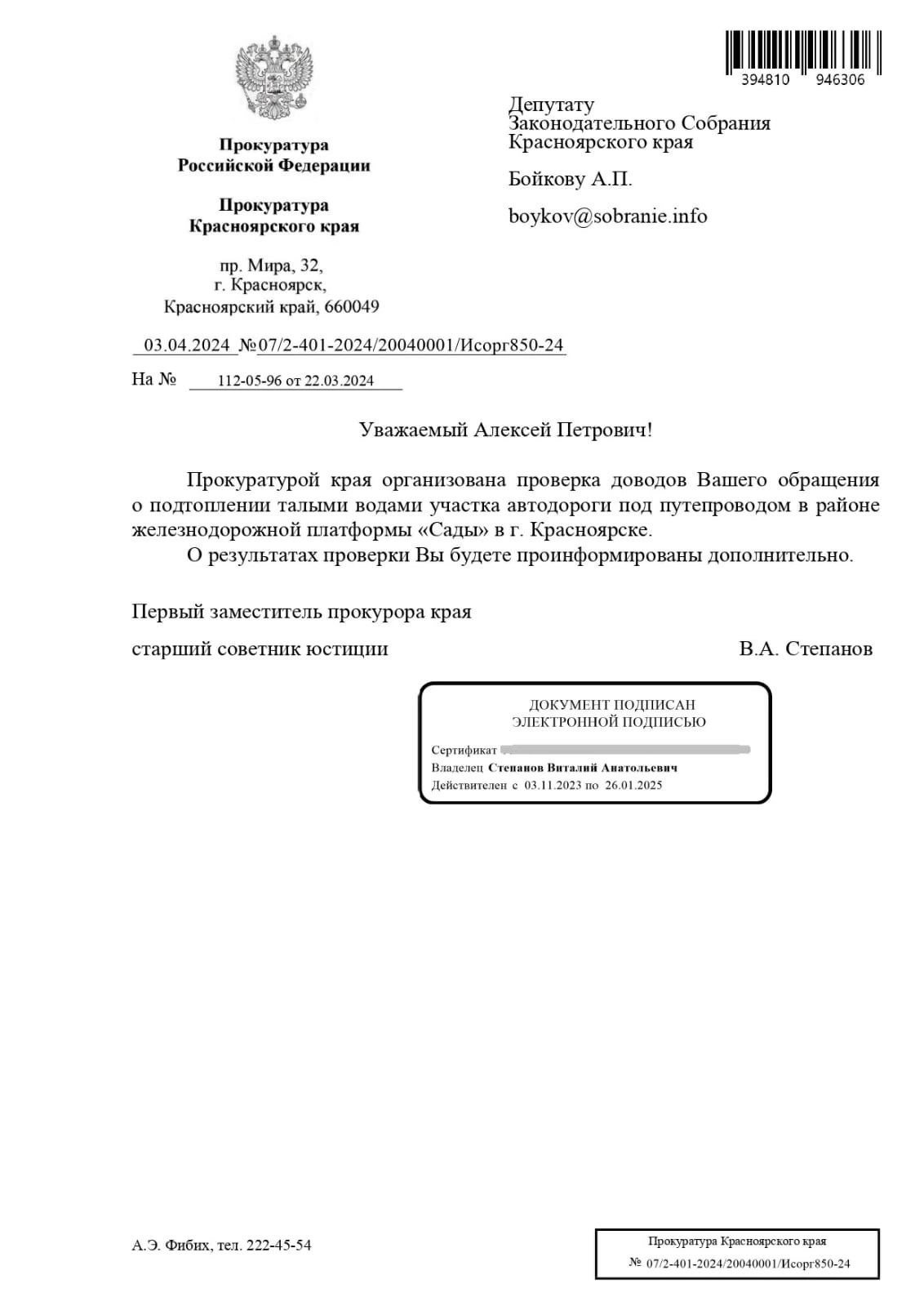 «Несколько лет назад власти сообщали о передаче в муниципальную собственность Красноярска землеотвода земельного участка и необходимости подключения ранее установленного насосного оборудования, но дальше обещаний дело не пошло. Лужа и ныне там, а многолетнее бездействие чиновников откровенно раздражает граждан. Вот так, мало-помалу, власть теряет доверие народа», — отметил Алексей Бойков.