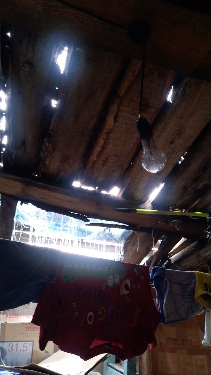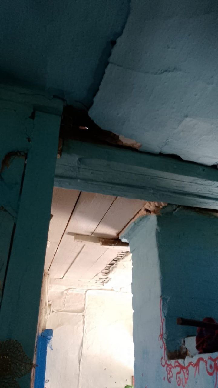 Сквозь крышу видно небо, во время дождей дом заливает водой
