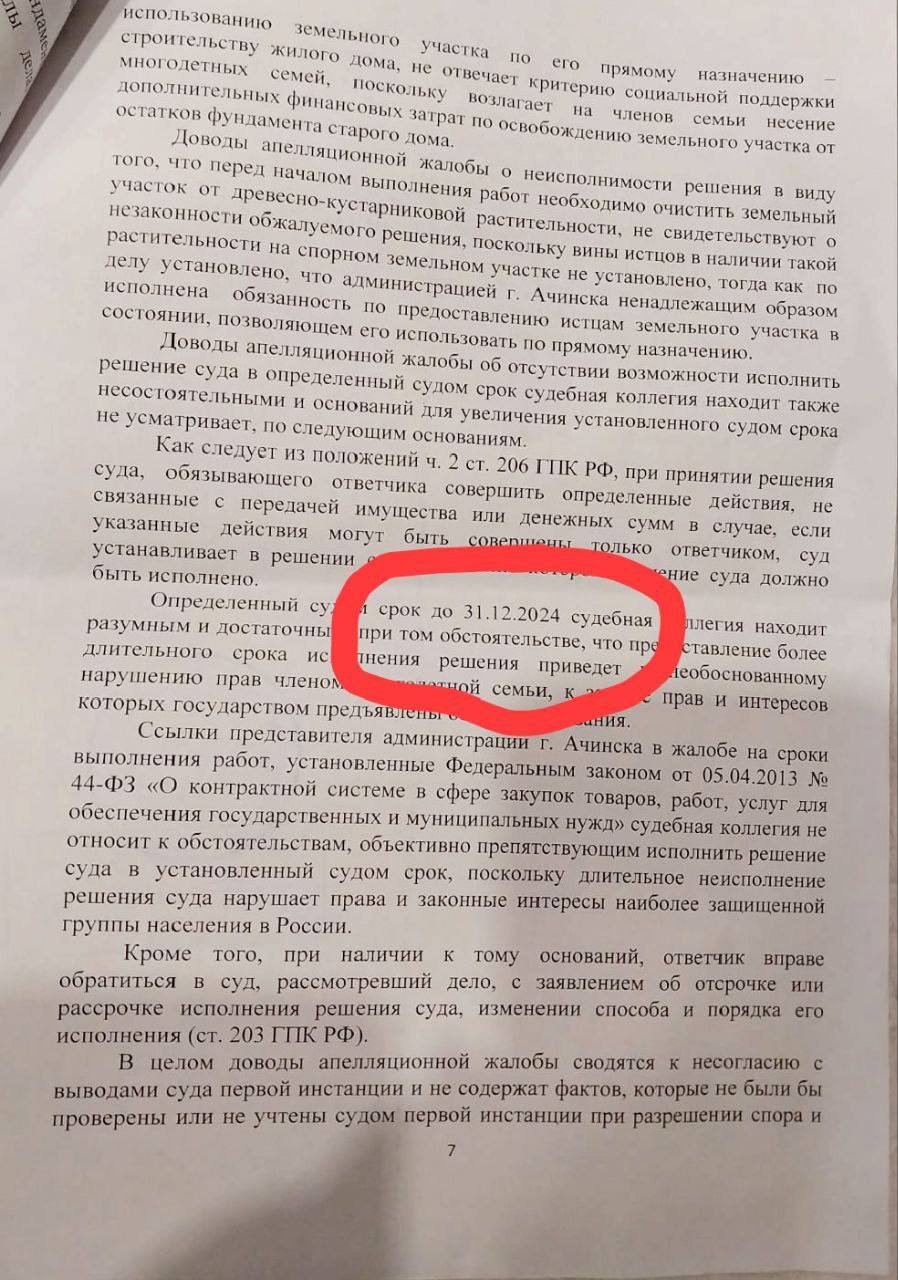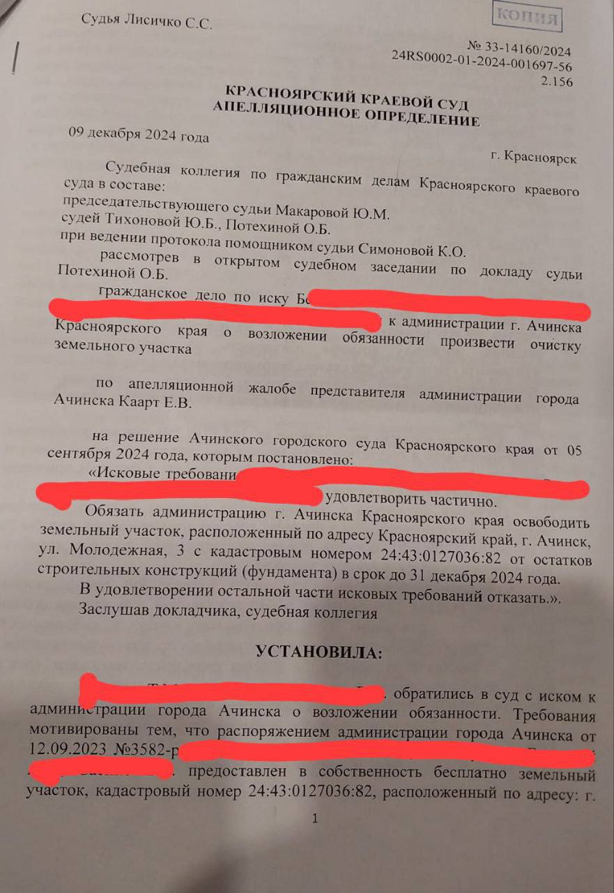 Многодетная семья выиграла суд, но не может добиться от ачинских чиновников расчистки участка земли